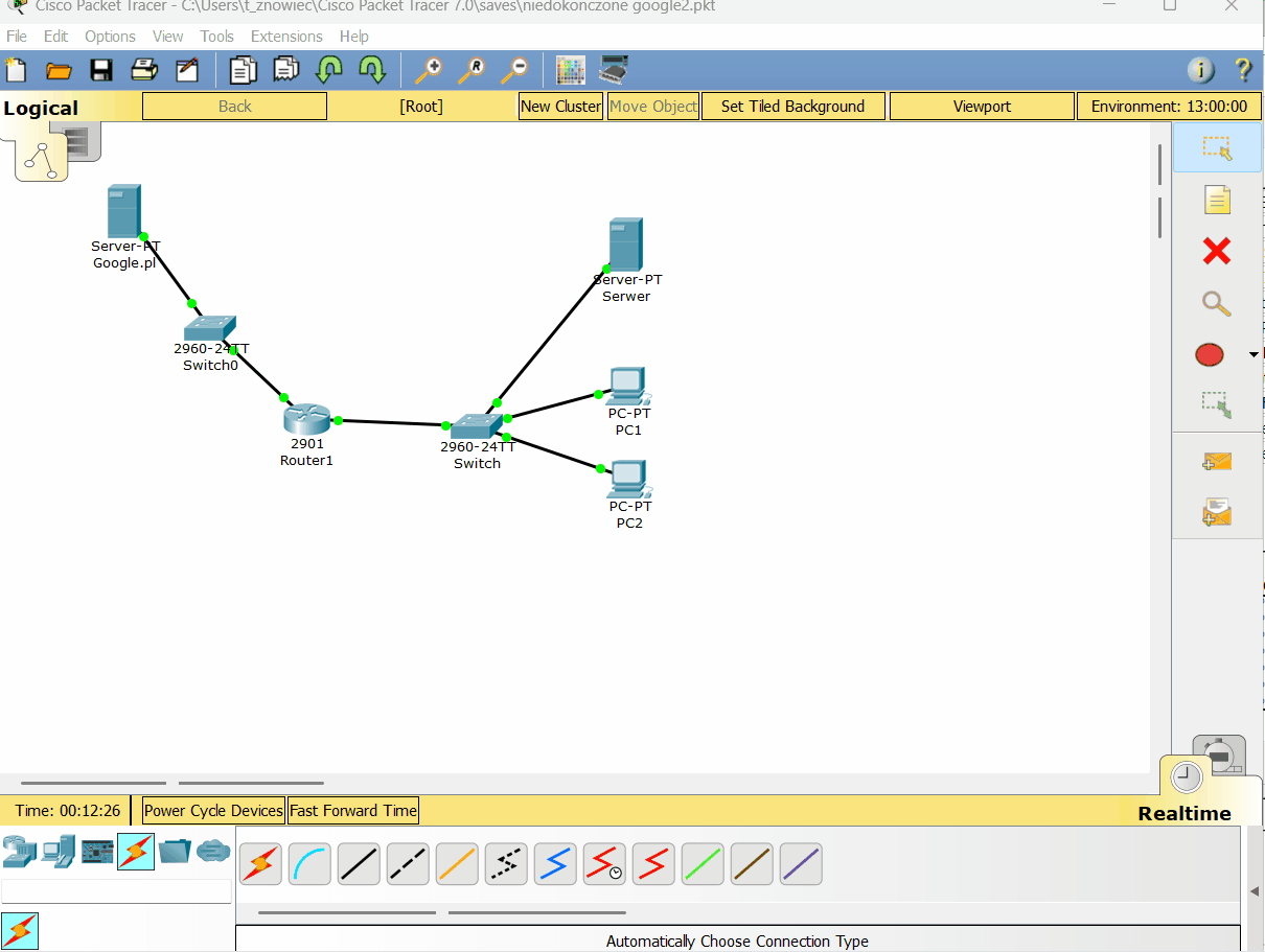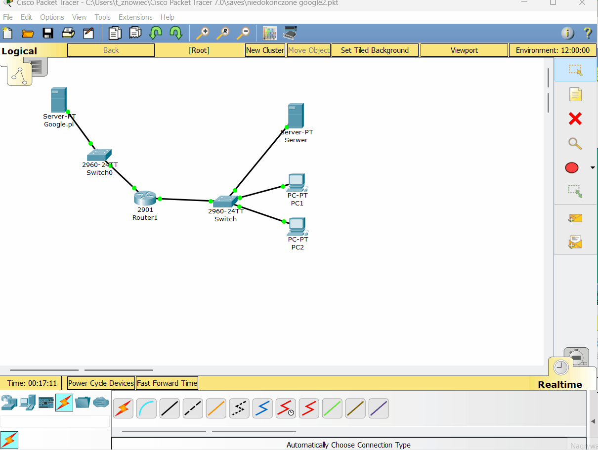 Dodajmy jeszcze jeden switch i serwer, hostujący google.pl