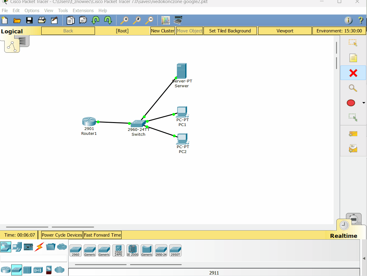 8. W Cisco Packet Tracert nie mamy dostępu do internetu. Stwórzmy zatem symulację internetu.