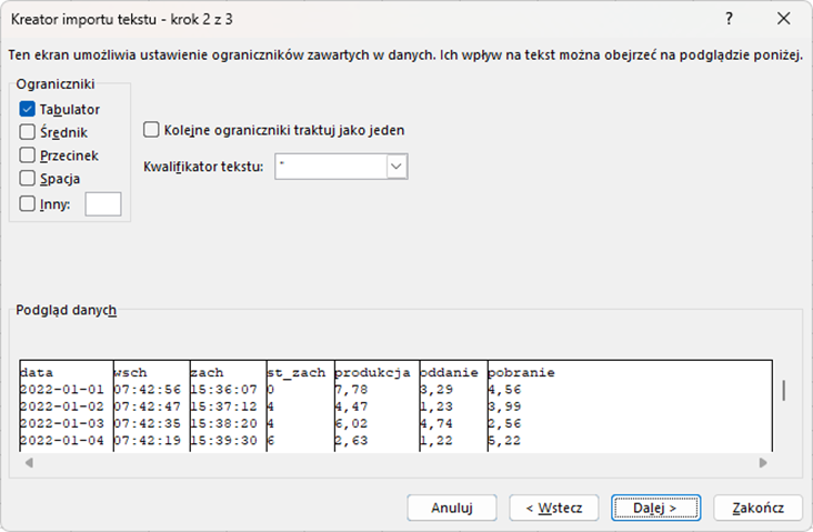 Otwórz Excela → zakładka Dane → Z tekstu/CSV
