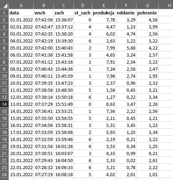 - produkcja – wyprodukowana energia