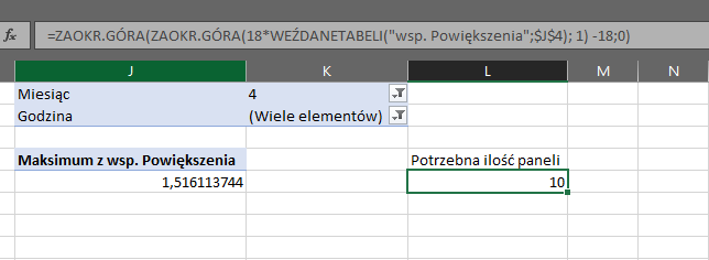 Potem bierzemy maksimum z tych k, przeliczamy na panele i zaokrąglamy w górę.